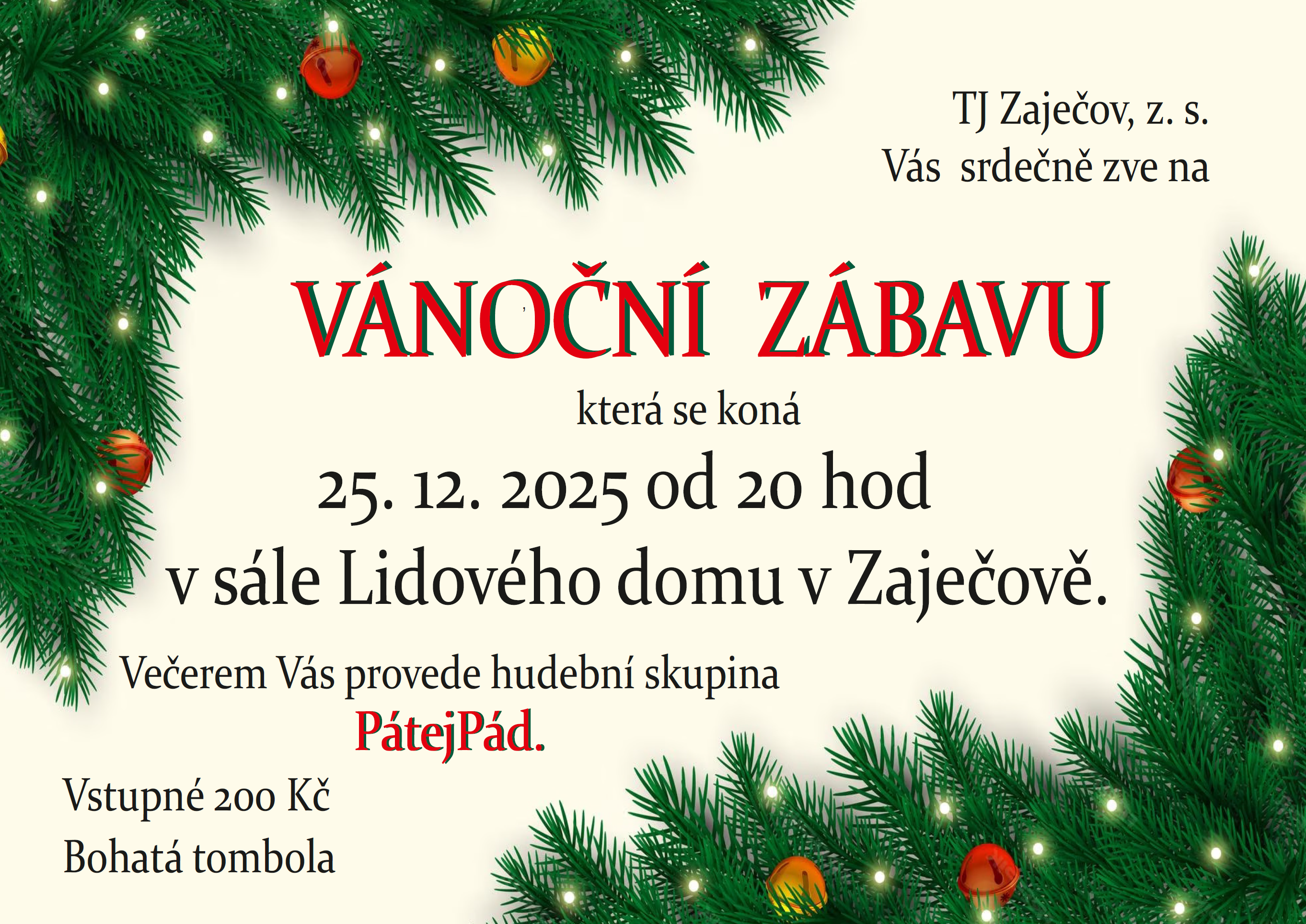 Vánoční zábava v Zaječově 2.12.2025 Vystavil: Václav Ungr Sdílet Sdílet Klikněte pro zkopírování URL Facebook Vánoční zábava v Zaječově